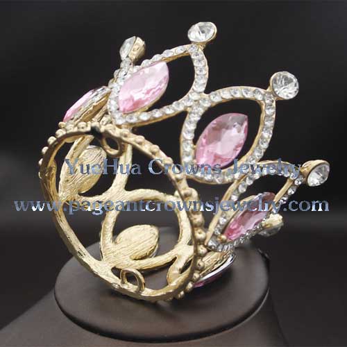 Name:Small Baby Rhinestone Full Round Pageant Queen Crowns With Pink Diamonds